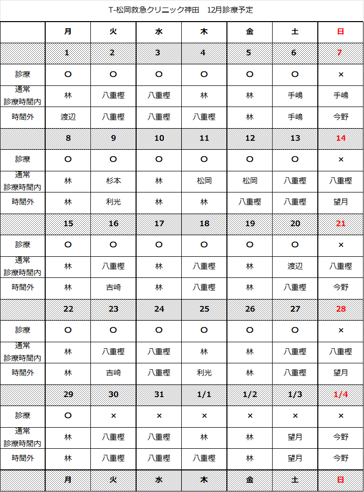 12月診療予定