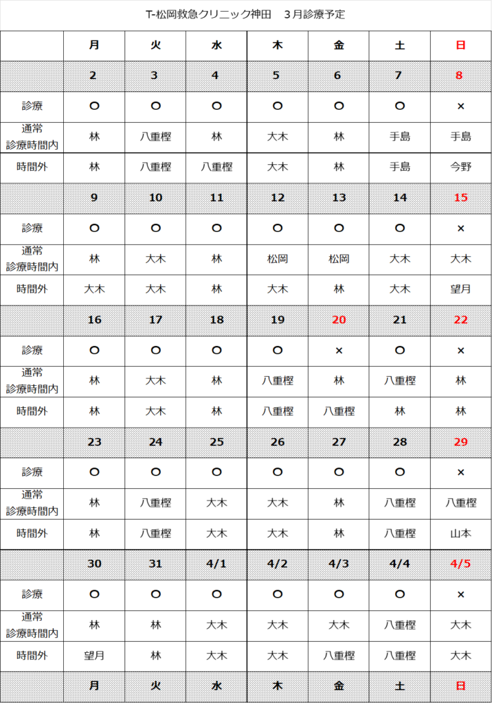 3月診療予定