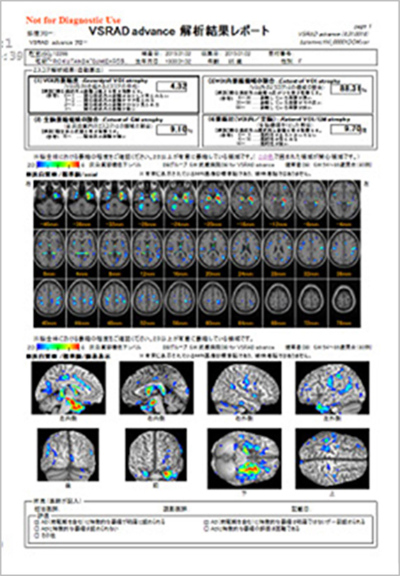 早期アルツハイマー型認知症診断支援システム 認知症を早期に画像で診断できます。 認知症の早期に発見することで進行を予防できます。